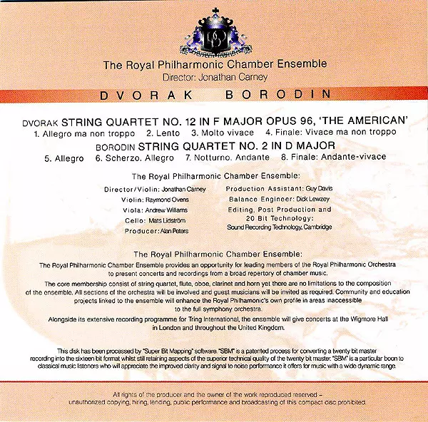 | Artista | Antonín Dvořák | Alexander Borodin | The Royal Philharmonic Chamber Ensemble |