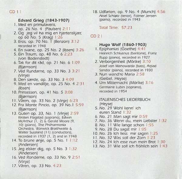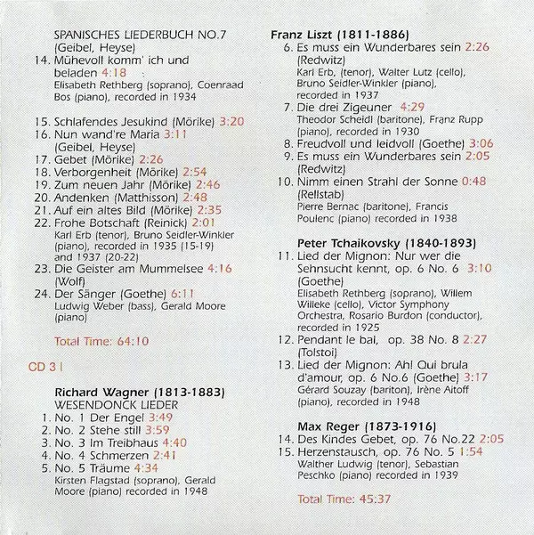 | Artista | Pyotr Ilyich Tchaikovsky | Edvard Grieg | Richard Wagner | Franz Liszt | Hugo Wolf |