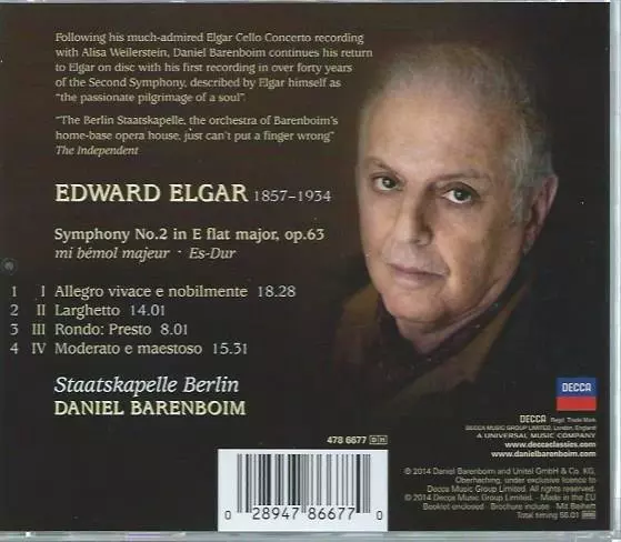 | Artista | Daniel Barenboim | Sir Edward Elgar | Staatskapelle Berlin |