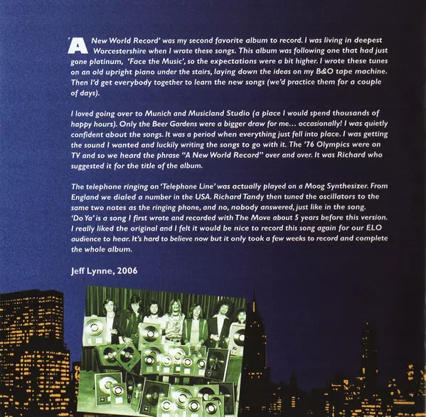 A New World Record is the sixth studio album by the Electric Light Orchestra (ELO), released in 1976. The album was commercially successful, reaching number six on the UK Albums Chart and number eleven on the US Billboard 200. The album spawned two singles, "Telephone Line" and "Livin' Thing". The album A New World Record was certified platinum ...
