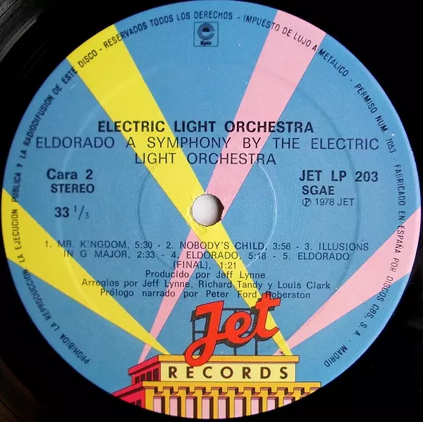 Electric Light Orchestra: Eldorado - A Symphony By The Electric Light Orchestra versión en vinilo LP en estándar edición. Esta edición en concreto se lanzó en España en la editorial Jet Records en colaboración con Epic del año 1978.