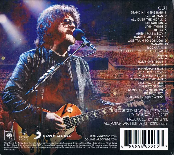 Live energy for the home In June 2017, Jeff Lynne and his Electric Light Orchestra celebrated with a big live party at London's Wembley Stadium. A recording of this extraordinary performance, "Jeff Lynne's ELO - Wembley Or Bust" is now available in both video and audio formats. The British rock legends performed a total of 23 songs during the ev...
