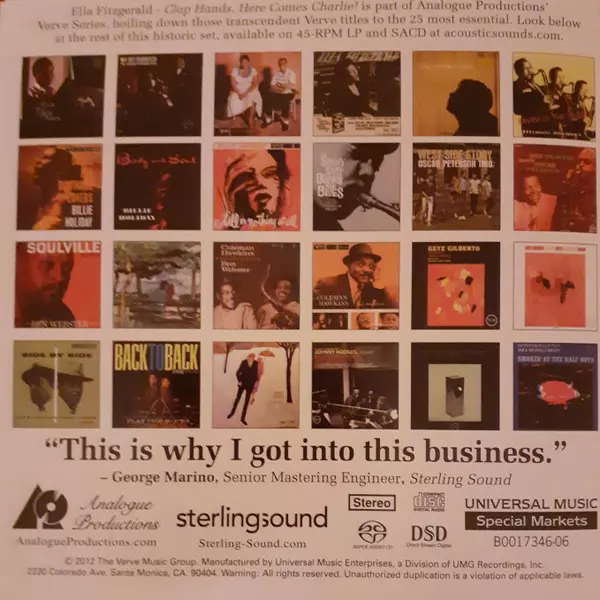 | Editorial | Analogue Productions | Universal Music Special Markets | Verve Records |