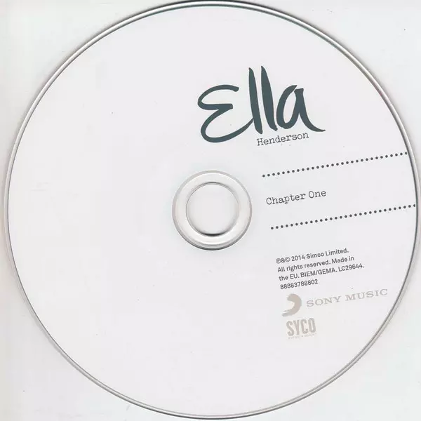 Ella Henderson: Chapter One versión en CD en estándar edición. Esta edición en concreto se lanzó en Europa y Reino Unido en la editorial Syco Music en colaboración con Sony Music el día 13. octubre 2014. Álbum puede clasificarse como género Pop. 13 Tracks.