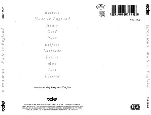 Elton John's twenty-fourth album was largely recorded a year earlier, in the early months of 1994, just before Elton released new songs with Sir Tim Rice for the soundtrack of The Lion King. At the time of the release of Made In England, the band's frontman was 48 years old. "Believe", the lead single from the album that preceded Made In England...