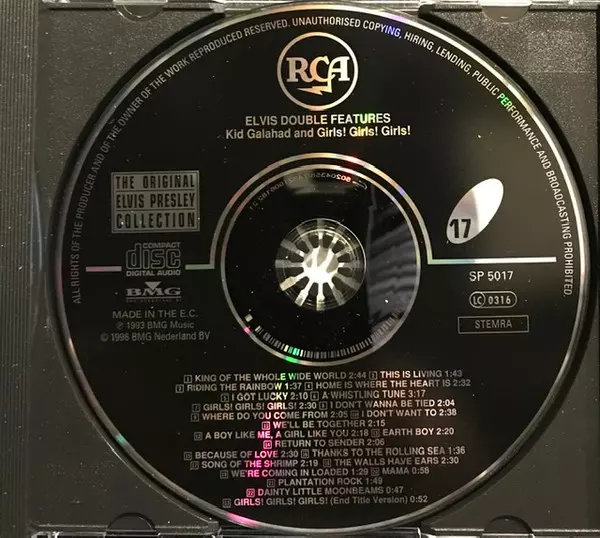 Elvis Presley: Kid Galahad And Girls! Girls! Girls! versión en CD en estándar edición. Esta edición en concreto se lanzó en Países Bajos en la editorial RCA en colaboración con BMG Nederland BV el día 10. diciembre 2008. Álbum abarca todos los géneros Rock, Pop, Escenario y pantalla, Soundtrack y Rock & Roll.