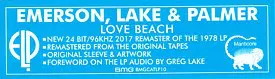 "Love Beach" is the seventh studio album by the English progressive rock band formed by members of The Nice (Keith Emerson), King Crimson (Greg Lake) and Atomic Rooster (Carl Palmer). Deluxe reissue of Emerson, Lake & Palmer's 1978 seventh studio album "Love Beach". This reissue of this progressive rock classic features a 24-bit / high density r...