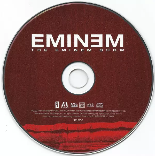 Eminem: The Eminem Show versión en CD en estándar edición. Esta edición en concreto se lanzó en Europa en la editorial Interscope Records en colaboración con Aftermath Entertainment, Shady Records y Web Entertainment el día 27. mayo 2002.