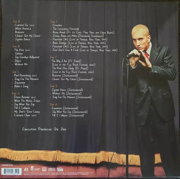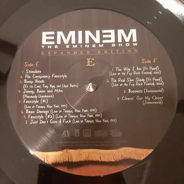 Eminem: The Eminem Show DLX versión en vinilo 4LP en deluxe edición. Esta edición en concreto se lanzó en Mundo entero en la editorial Aftermath Entertainment en colaboración con Interscope Records, UMe, Web Entertainment y Shady Records el día 27. enero 2023.