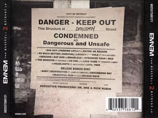 Eminem: The Marshall Mathers LP 2 DLX versión en 2CD en deluxe edición. Esta edición en concreto se lanzó en Europa en la editorial Aftermath Entertainment en colaboración con Shady Records, Interscope Records y Web Entertainment el día 7. noviembre 2013.
