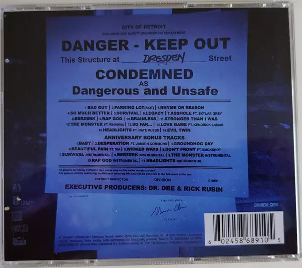 Eminem: The Marshall Mathers LP 2 versión en 2CD en estándar edición. Esta edición en concreto se lanzó en Europa en la editorial Aftermath Entertainment en colaboración con Interscope Records, UMe, Web Entertainment y Shady Records el día 9. febrero 2024.