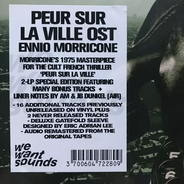 Peur Sur La Ville (Bande Originale Du Film) is an album by Ennio Morricone , released in 1975. The album contains the soundtrack to the film "Peur Sur La Ville" (Fear Over the City), directed by Henri Verneuil and starring Jean-Paul Belmondo and Charles Bronson. The album was nominated for an Academy Award for Best Original Score at the 48th Aca...