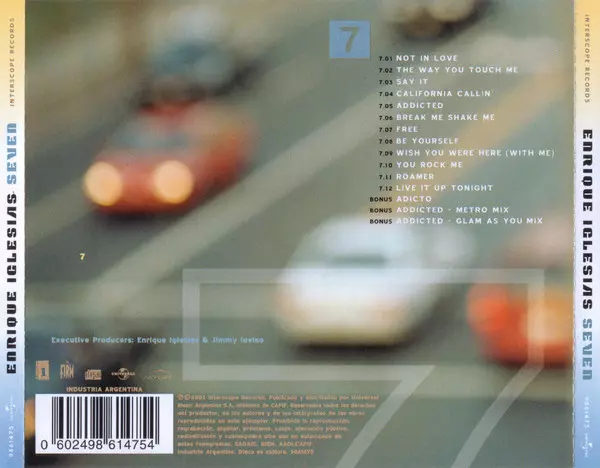 Enrique Iglesias: Seven versión en CD en estándar edición. Esta edición en concreto se lanzó en Argentína en la editorial Interscope Records en colaboración con Universal del año 2003. Álbum abarca todos los géneros Pop, Música electrónica, Música latina, House y Latin Pop.