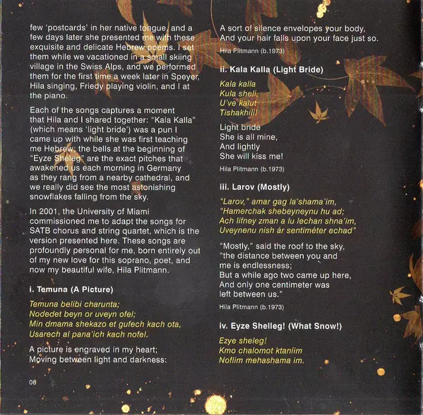 Cello [Pavão Quartet] Bryony James | Ensemble [Quartet] The Pavão String Quartet | Speech [Spoken Hebrew], Words By Hila Plitmann | Viola [Pavão Quartet] Natalia Gomes | Violin [Pavão Quartet] Kerenza Peacock, Naomi Rump
