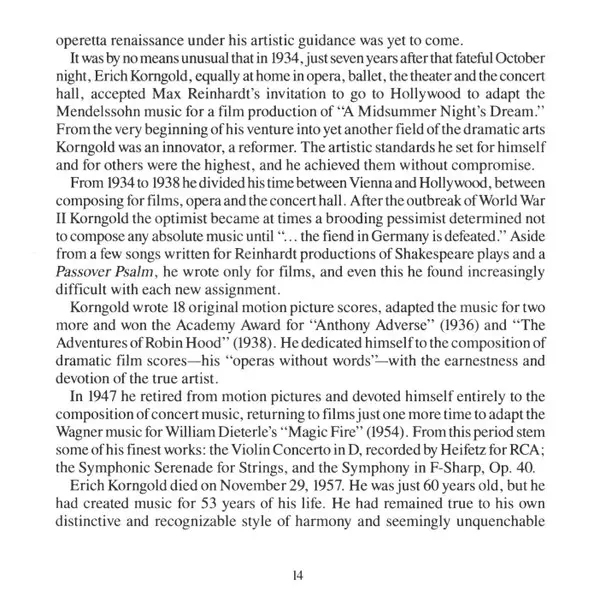 | Artista | Erich Wolfgang Korngold | National Philharmonic Orchestra | Charles Gerhardt |