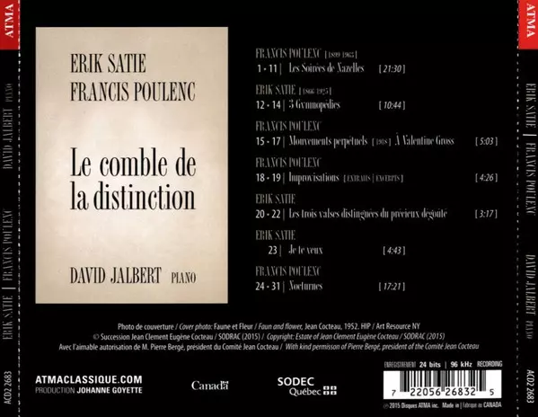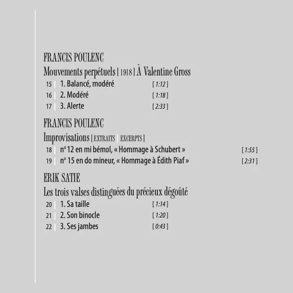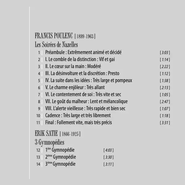 | Artista | Erik Satie | Francis Poulenc | David Jalbert |