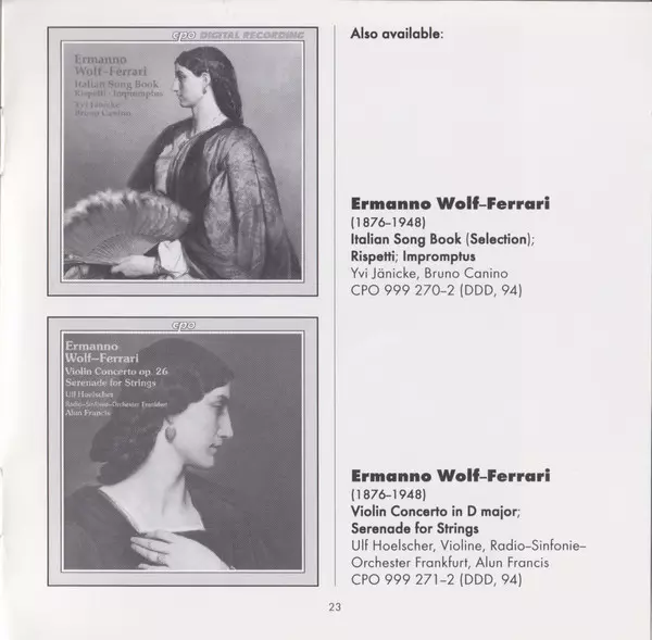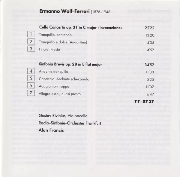 | Artista | Radio-Sinfonie-Orchester Frankfurt | Alun Francis | Ermanno Wolf-Ferrari | Gustav Rivinius |