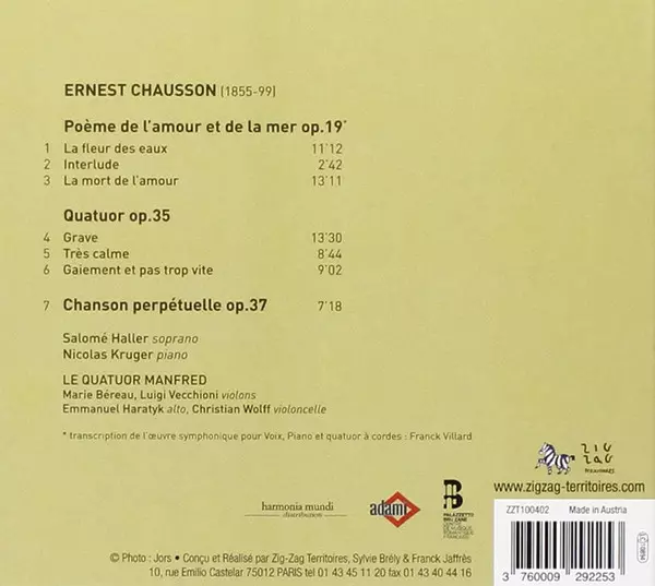 Artista | Ernest Chausson | Nicolas Krüger | Quatuor Manfred Bourgogne | Salomé Haller |