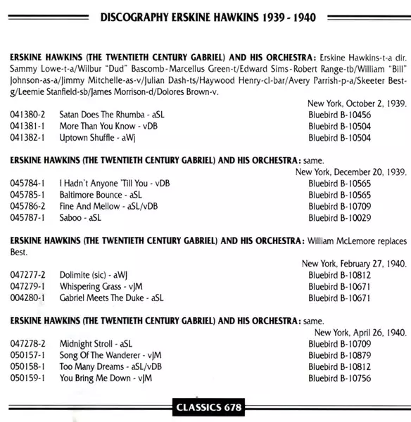 | Artista | Erskine Hawkins And His Orchestra |