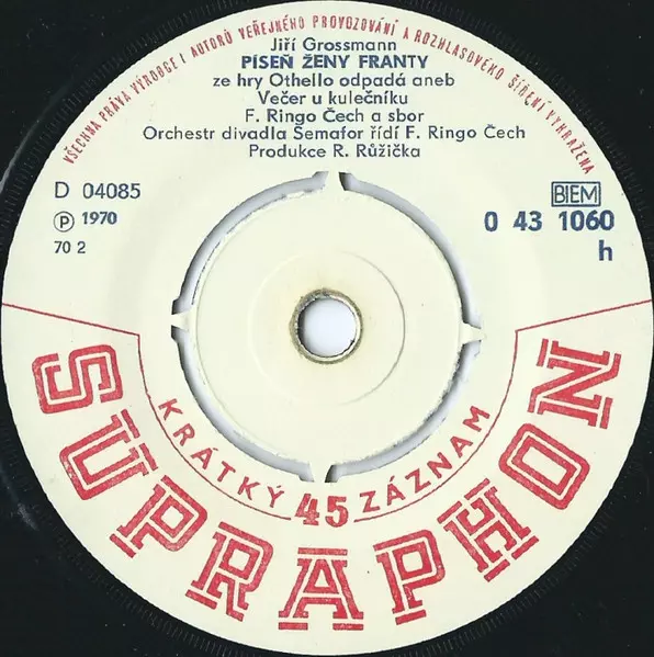 | Backing Vocals [Uncredited] Jiří Grossmann | Chorus [Sbor] Sbor Divadla Semafor | Vocals František Ringo Čech | |||