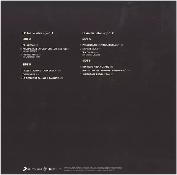 | Editorial | Sony Music | RCA | Nuvole Production s.r.l. |