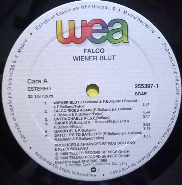Falco Wiener Blut from 1988 is a mixture of rock and pop. The album was commercially successful and reached number one in Austria and Germany. The title track "Wiener Blut" became a number one hit in Austria. Other singles from the album, "Rock Me Amadeus" and "Jeanny", were also successful. "Rock Me Amadeus" reached number one in the United States and number two in the UK. "Jeanny" reached number one in Austria and number three in Germany.