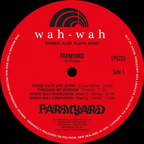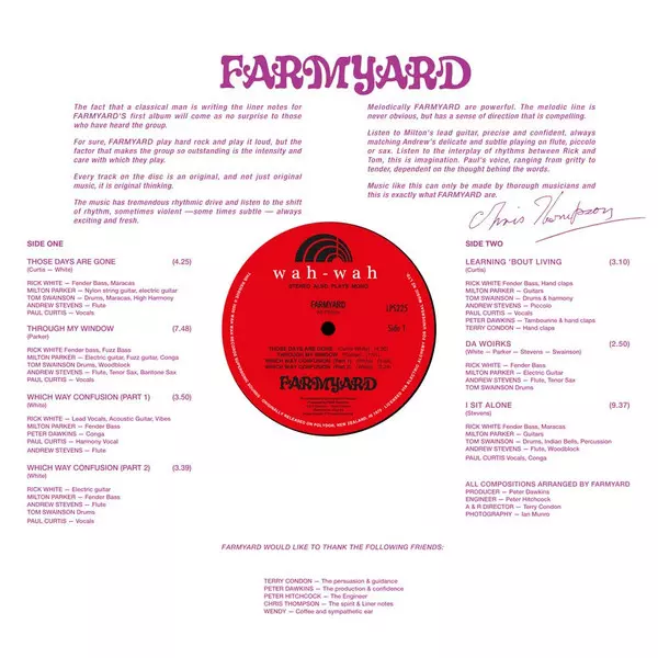 Farmyard: Farmyard LTD versión en vinilo LP en de edición limitada edición. Esta edición en concreto se lanzó en España en la editorial Wah Wah Records el día 16. octubre 2020. Álbum abarca todos los géneros Rock y Country-Rock.