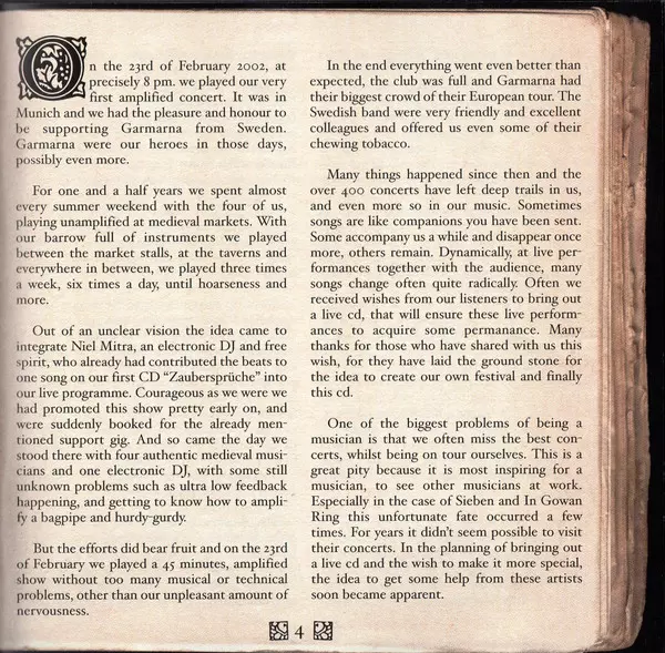 Bongos Rüdiger Maul | Chalumeau Fiona Rüggeberg | Harp [Celtic Harp] Oliver Sa Tyr | Music By, Lyrics By B'eirth, In Gowan Ring | Vocals, Guitar, Lute B'eirth
