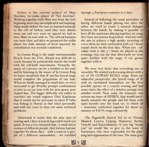 Sieben: Faun & The Pagan Folk Festival - Live DIGI versión en CD en digipack edición. Esta edición en concreto se lanzó en Alemania en la editorial Heart of Berlin el día 28. marzo 2008. Álbum abarca todos los géneros Rock, Folk Rock y Neofolk. Digipack Vinyl.
