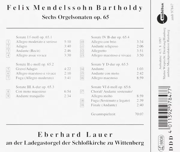 | Artista | Felix Mendelssohn-Bartholdy | Eberhard Lauer |