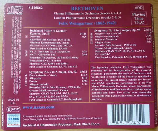 | Título | Symphony No. 7 / Symphony No. 8 / Egmont Overture |