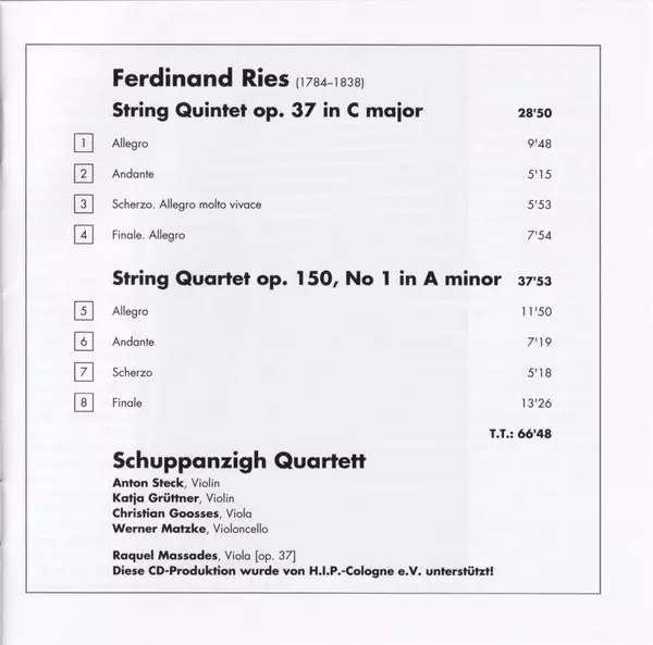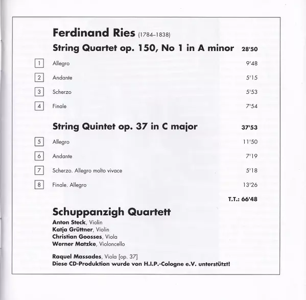 | Artista | Ferdinand Ries | Schuppanzigh Quartett |