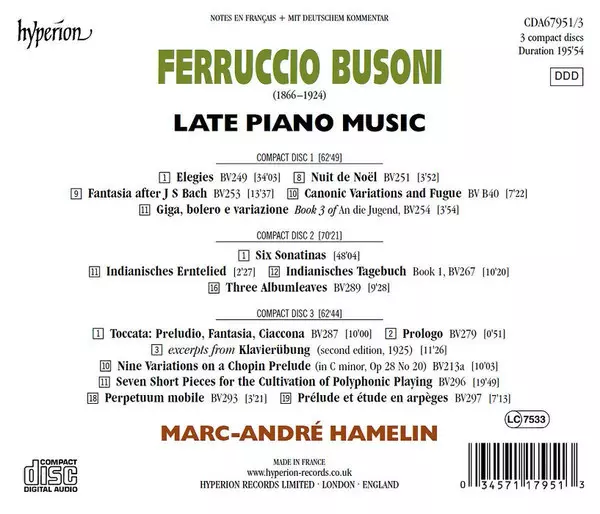 | Artista | Ferruccio Busoni | Marc-André Hamelin |