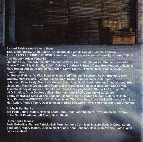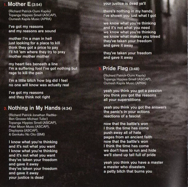 Co-producer [Co-Produced By], Engineer [Engineered By], Programmed By [Programming By] Danny Lohner | Written-By Danny Lohner, Richard Patrick
