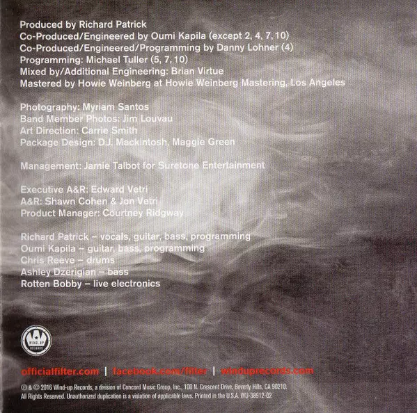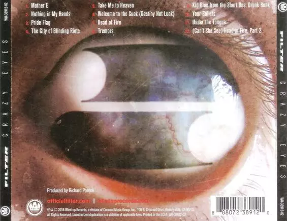 Filter: Crazy Eyes versión en CD en estándar edición. Esta edición en concreto se lanzó en EE.UU. en la editorial Wind-Up el día 22. agosto 2016. Álbum abarca todos los géneros Rock, Música electrónica y Industrial.