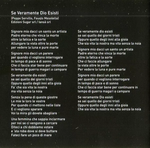 | CD-1 | Fiorella Mannoia: Se Veramente Dio Esisti | ||