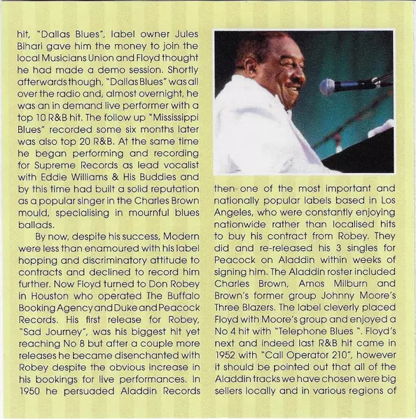 | Bass Johnny Miller (2) | Drums Ellis Walsh | Guitar Johnny Moore (2), Oscar Moore | Tenor Saxophone Maxwell Davis | Vocals, Piano Floyd Dixon | |||