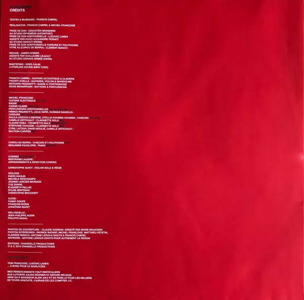 Arranged By [Strings], Conductor [Strings] Bertrand Lajudie | Cello Jean-Philippe Audin, Philippe Nadal | Viola Fanny Coupé, François Bodin (2), Jonathan Nazet | Violin Christophe Bruckert, David Naulin, Elisabeth Pallas, Jeanne Lancien Mondon, Michèle Deschamps, Sylvie Sentenac, Yue Zhang (2) | Violin [Solo], Technician [Régie] Christophe Guiot