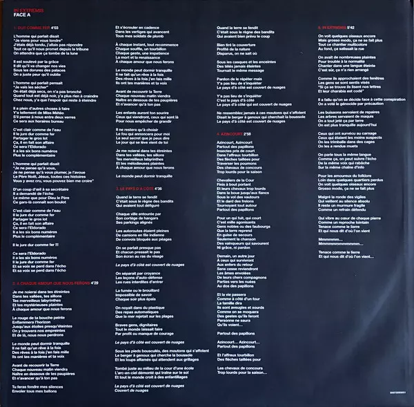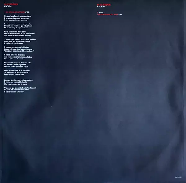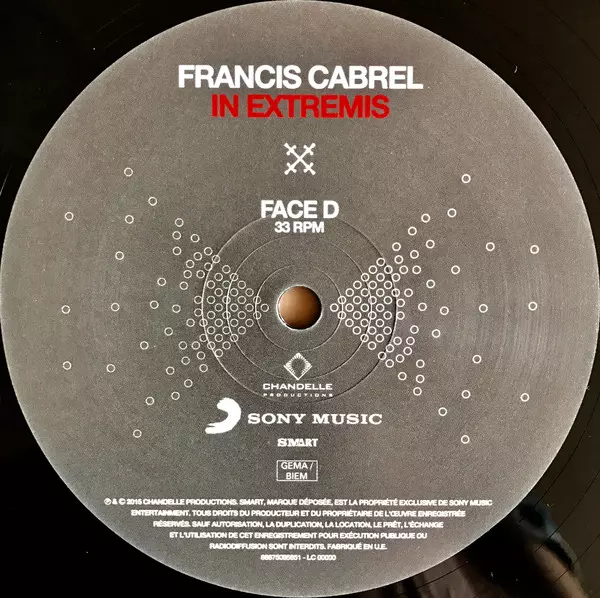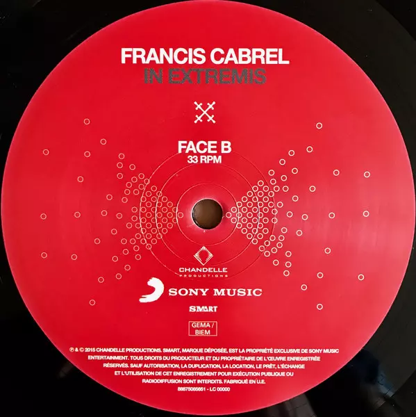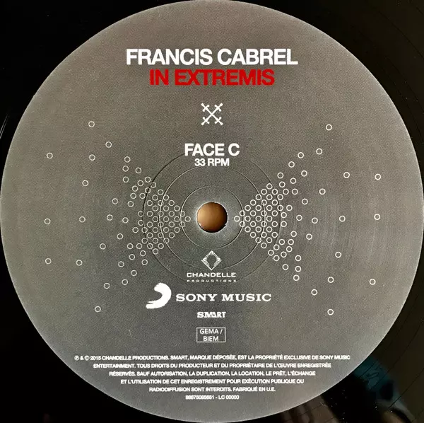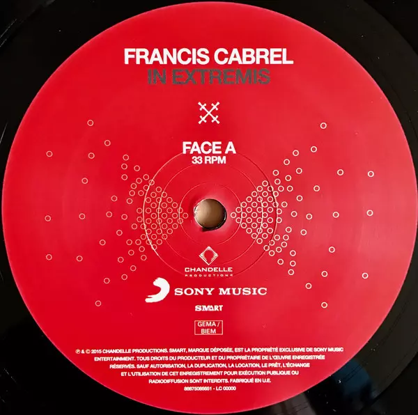 Francis Cabrel: In Extremis versión en vinilo 2LP en estándar edición. Esta edición en concreto se lanzó en Francia en la editorial Sony Music en colaboración con Smart (5) el día 2. junio 2015. Álbum puede clasificarse como género Pop.