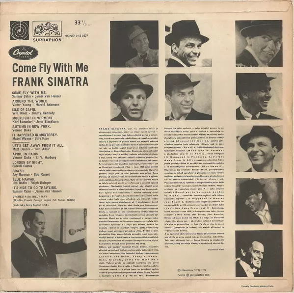 Frank Sinatra The album Come Fly With Me was released in 1958 and was a great success. The album included popular songs such as "I've Got You Under My Skin" and "Fly Me to the Moon". Sinatra's smooth vocals and jazzy arrangements make this album a classic.