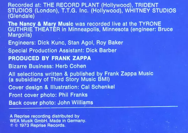 | Más información en | 1979 German Pressing — Reprise/Bizarre |