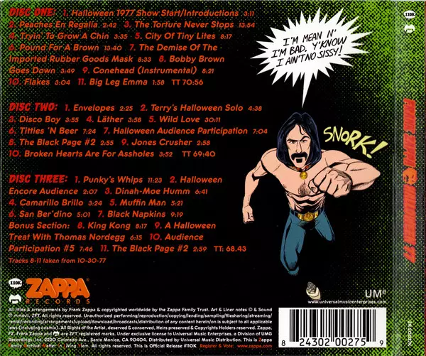 Frank Zappa's legendary Halloween concert in New York in 1977. From October 28-31, 1977, Zappa and his band played a total of six concerts at the Palladium in New York City. The most outstanding show of the Halloween evening and other selected live tracks from October 30 are now on this 3CD version.