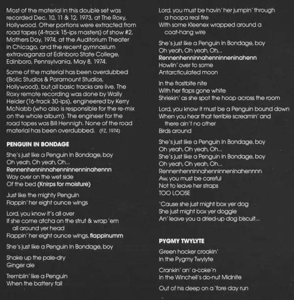 Originally Released: July 1974 Produced by: FZ