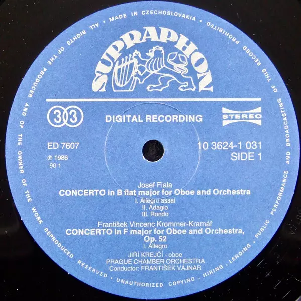 | Artista | Prague Chamber Orchestra | František Vajnar | František Vincenc Kramář - Krommer | Josef Fiala | Jiří Krejčí | Jan Zach |