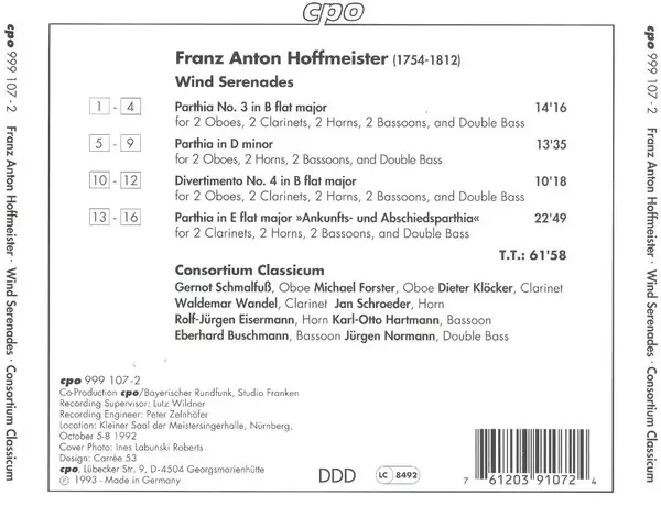 | Artista | Consortium Classicum | Franz Anton Hoffmeister |