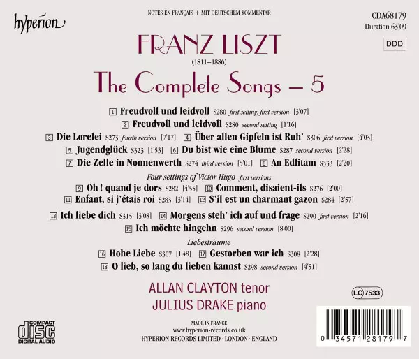 | Artista | Franz Liszt | Allan Clayton | Julius Drake |
