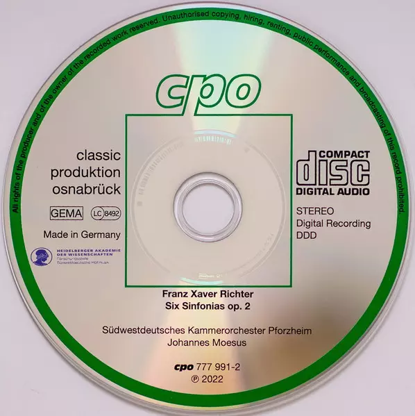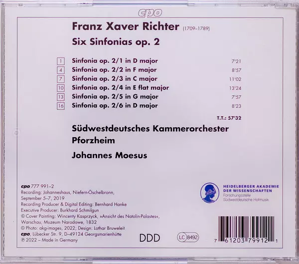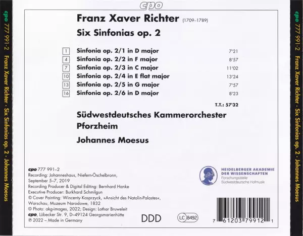 | Artista | Franz Xaver Richter | Johannes Moesus | Südwestdeutsches Kammerorchester |
