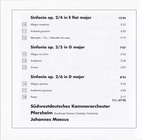 | Sinfonia Op. 2/4 In E Flat Major | 13:24 min | |
