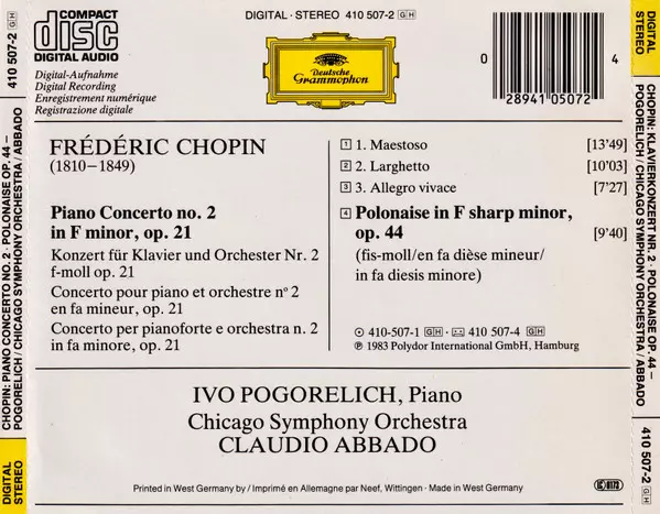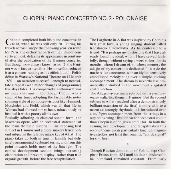 | Título | Piano Concerto = Klavierkonzert = Concerto Pour Piano No. 2 ∙ Polonaise Op. 44 |