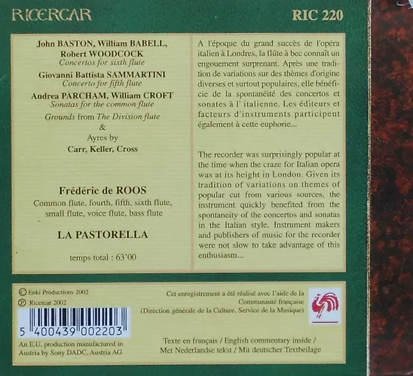 | Más información en | Digipack Enhanced CD (Ricercar, 2003) |